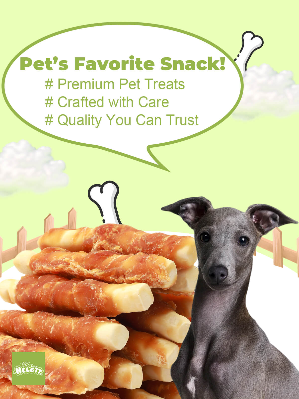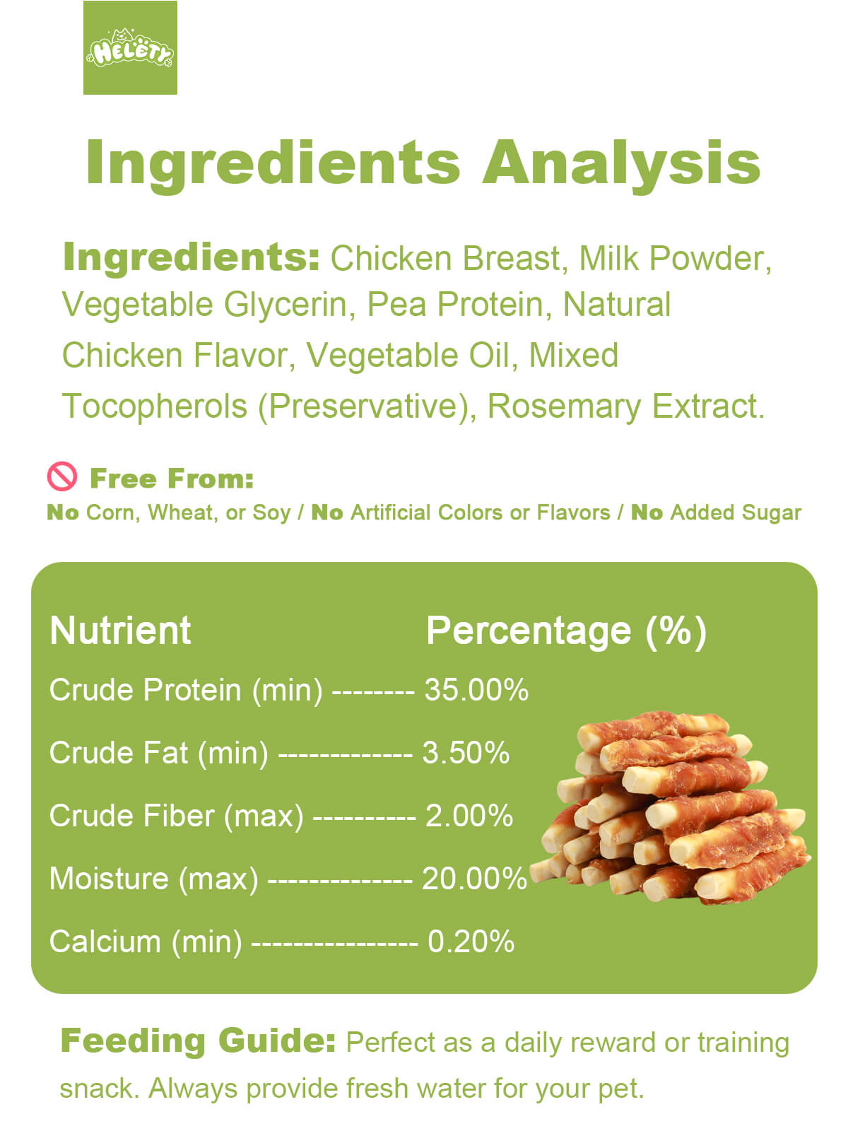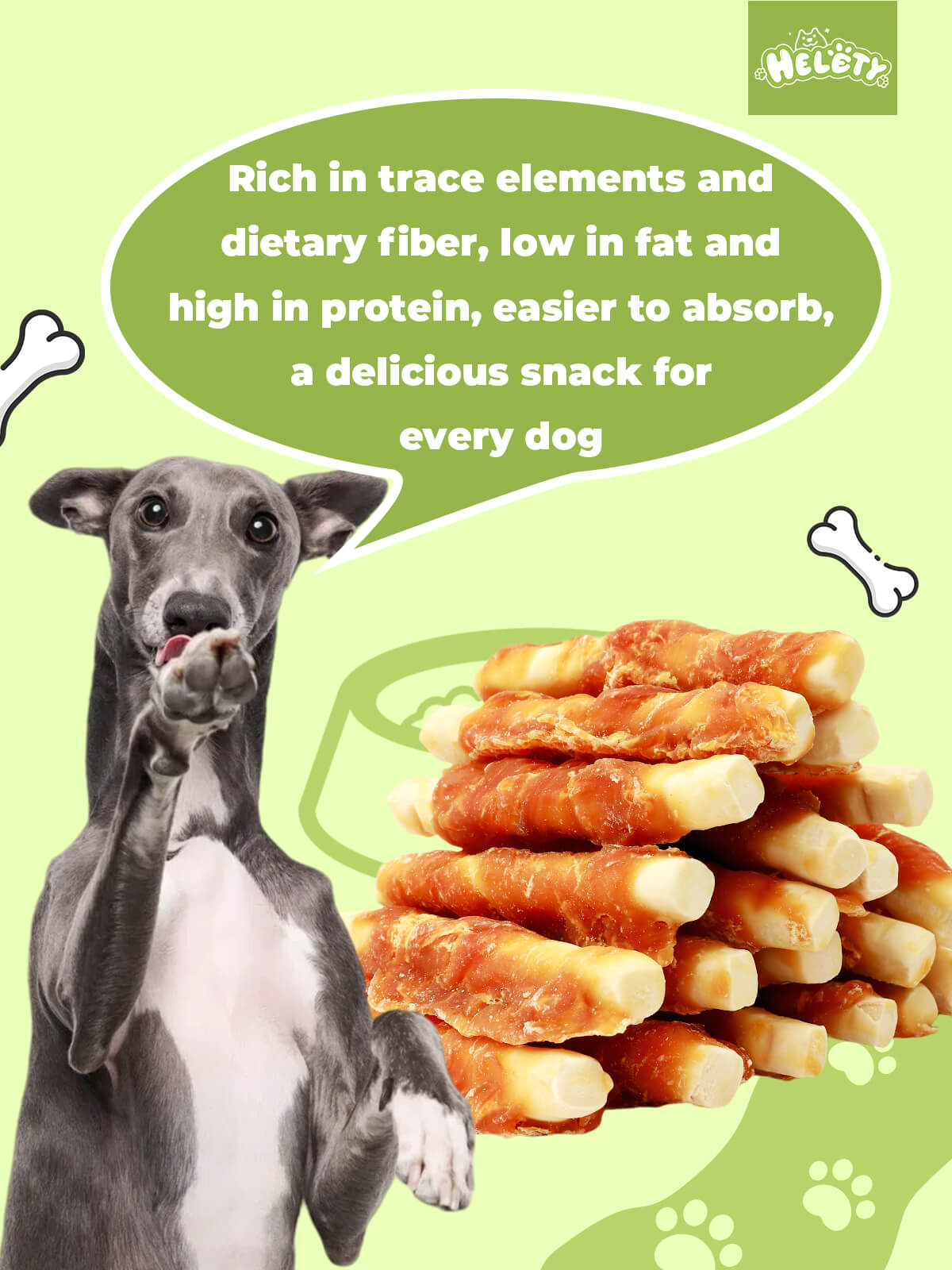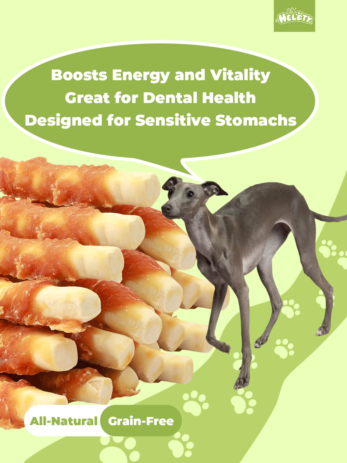 HELETY Healthy Dog Treats, Natural Ingredients, Soft Training Rewards Chicken Milk Chew Sticks for Small & Large Dogs