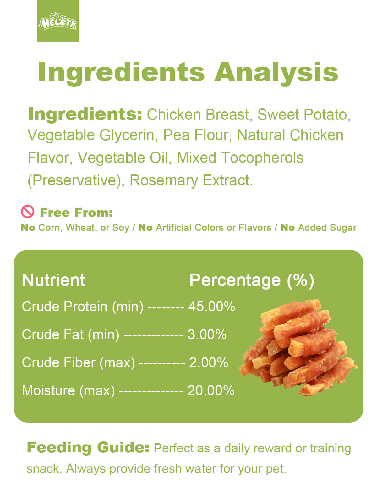 HELETY Grain Free Dog Treats, Natural Chicken Training Treats, Chicken and Sweet Potato, Soft & Chewy Snacks for Puppies & Adult Dogs