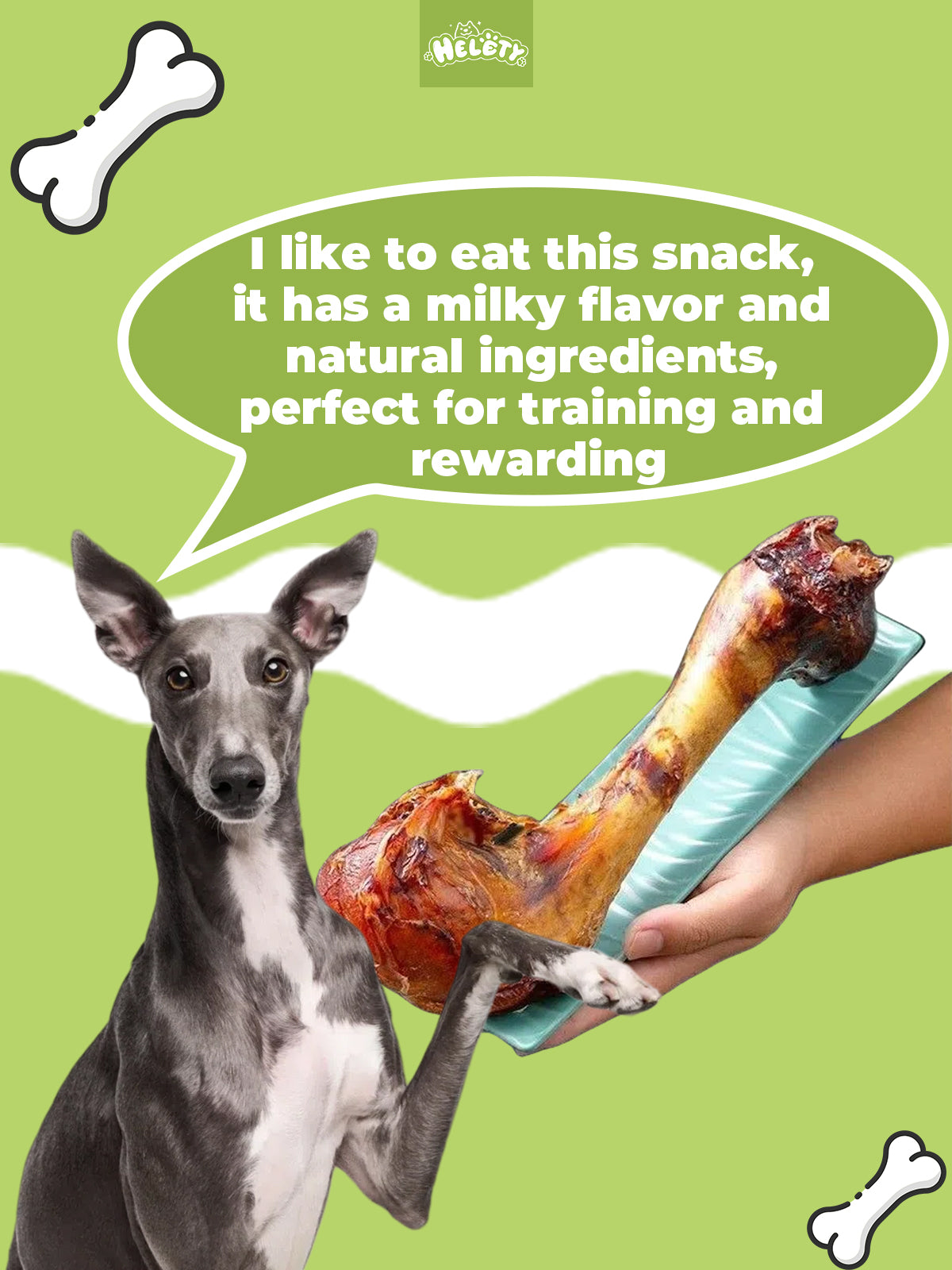 HELETY 1PCS Beef Bone Chews for Dogs, Long Lasting Chew Treats, Dental Health for Medium & Large Dogs