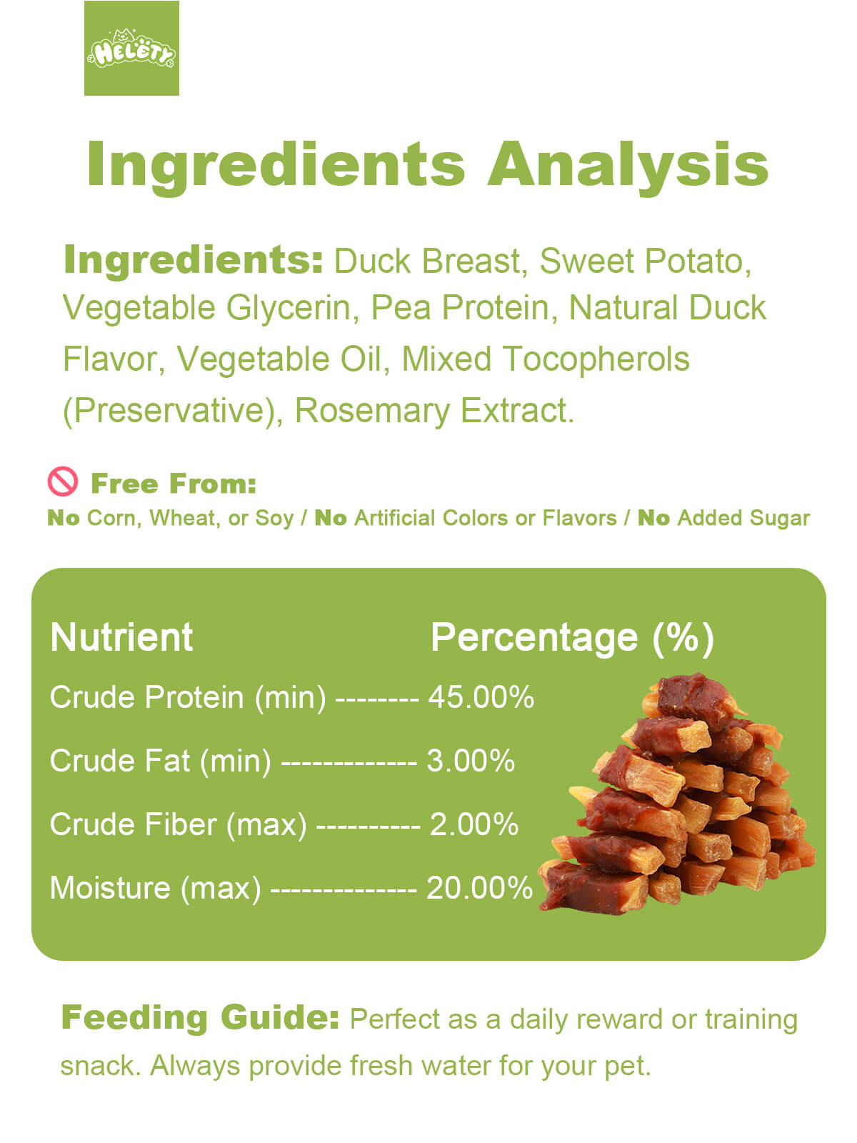 HELETY Dog Training Treats, Low Calorie Soft Chews, Natural Duck Flavor, Duck and Sweet Potato, Rewards for Small & Large Dogs