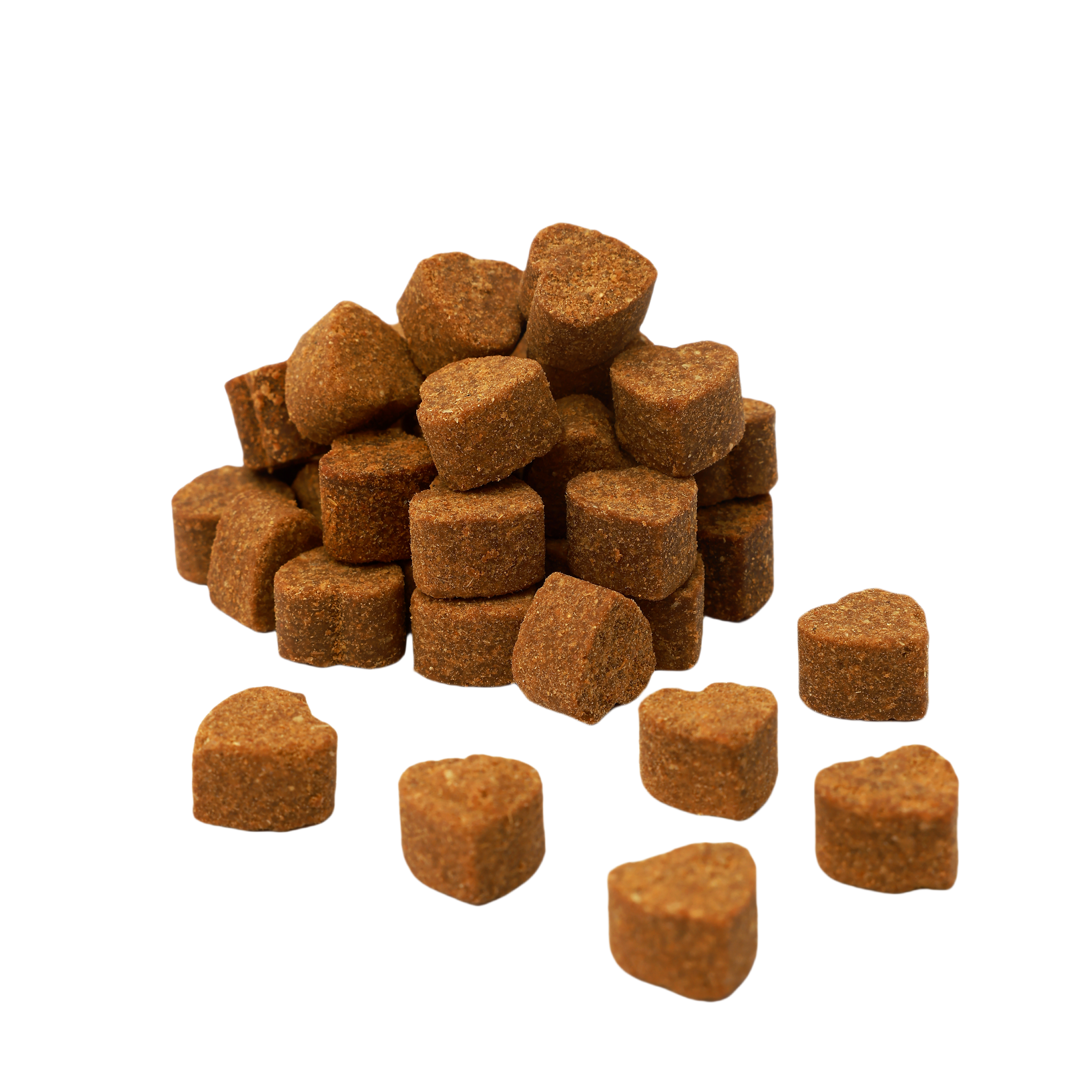Our treats are stored in a resealable pouch that ensures freshness and prevents odors from escaping. Great for on-the-go activities such as walks or camping trips.